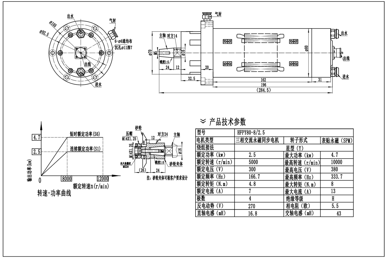 內(nèi)容描述: 刀具/刃具磨床用同步精密電主軸是我公司根據(jù)工具/刃具磨床的實際工作環(huán)境,加工要求,并借鑒瓦爾特、安卡等機床主軸的設計結構并融合公司20年的設計經(jīng)驗,開發(fā)適合于中國企業(yè)要求的磨削電主軸,廣泛運用于各類數(shù)控工具磨床,轉速從1500--12000rpm,功率1.0--30KW,電主軸采用渦流螺旋氣密封和機械密封,冷卻方式有循環(huán)油冷/水冷 循環(huán)氣冷 自冷三種冷卻方式 機械精度如下:1>同心度:內(nèi)外圓...